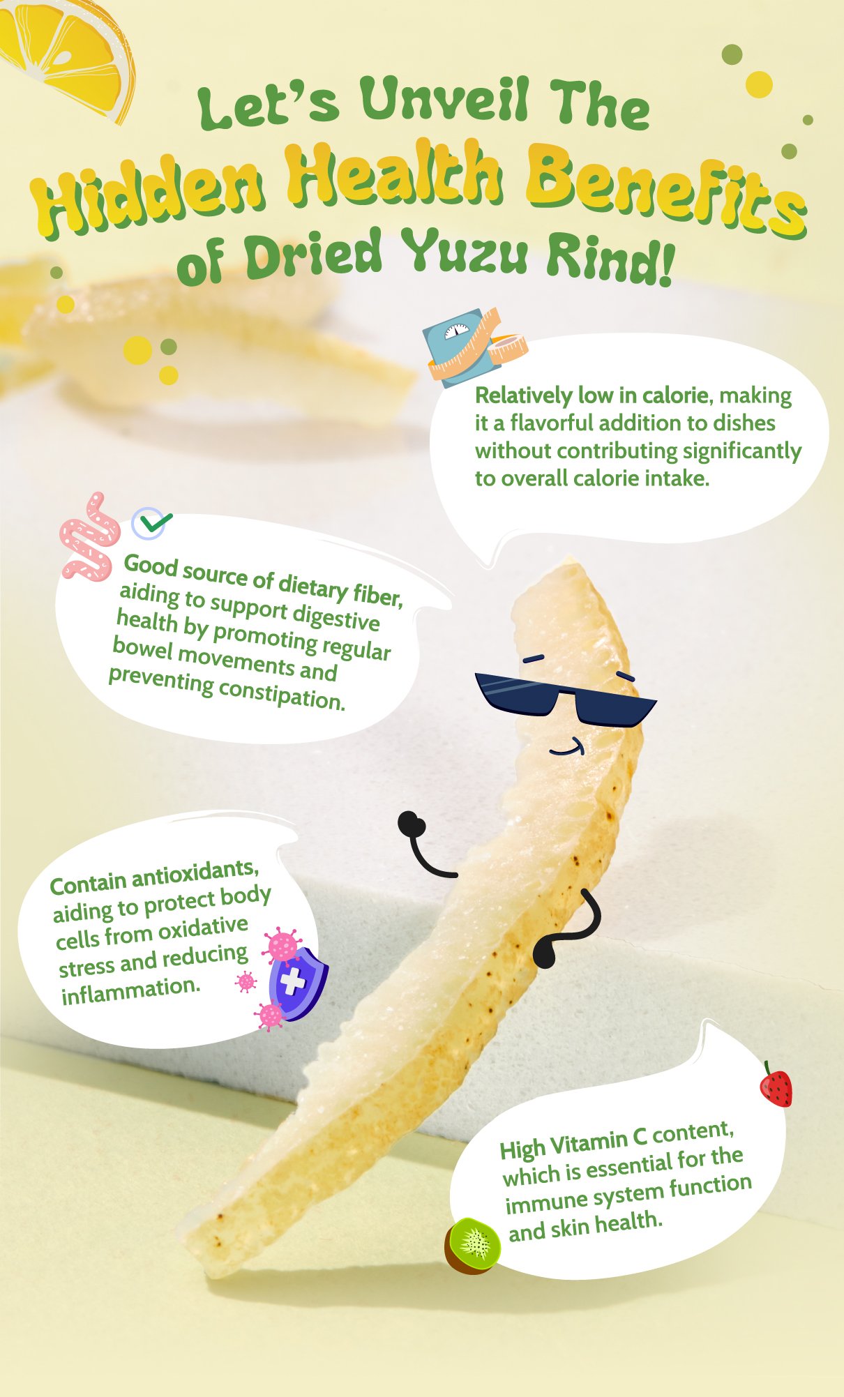 The drying process preserves the natural nutrients found in yuzu.