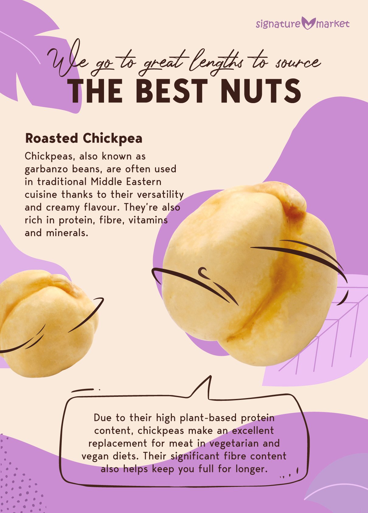 – Signature Market Roasted Chickpeas are a healthy and versatile snack made from chickpeas, also known as garbanzo beans, that are roasted to a satisfying crunch.