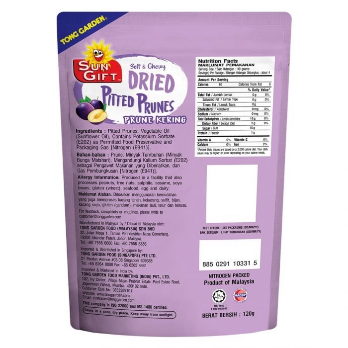 Sungift Dried Pitted Prunes are a product of Tong Garden.